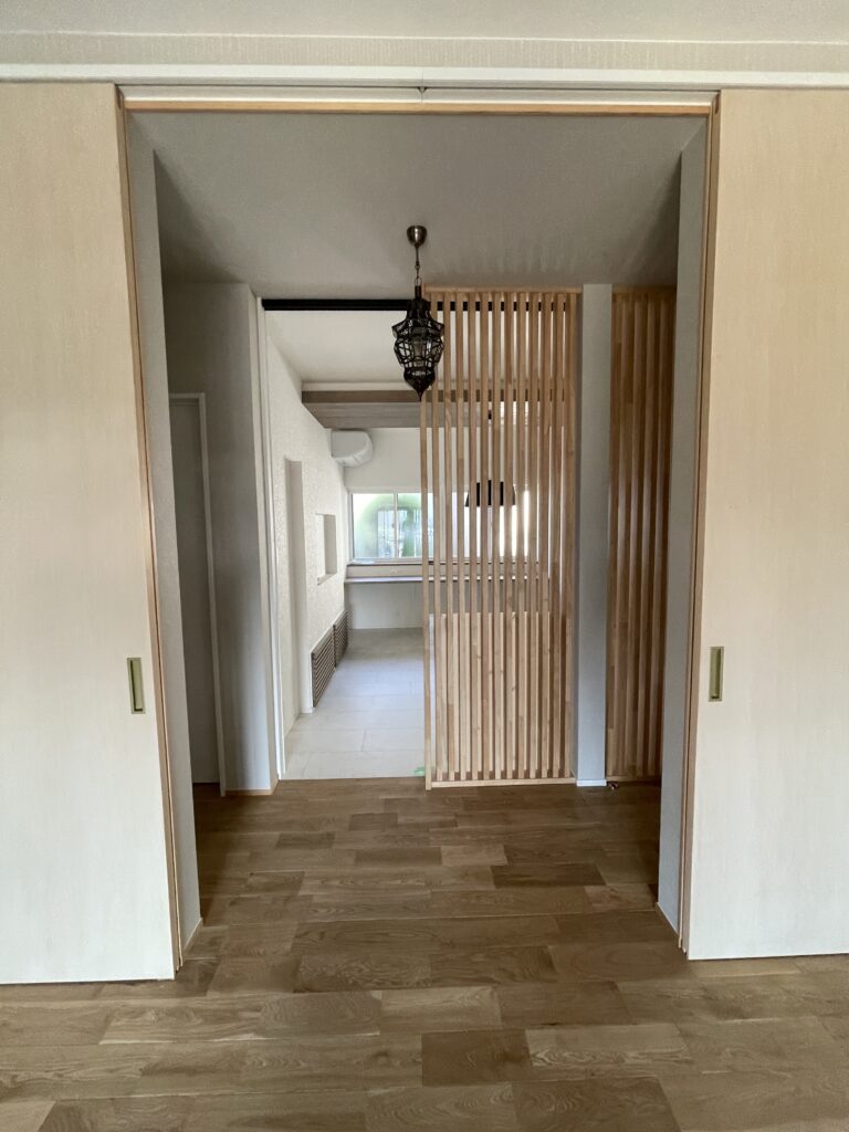 ダイニングは建具が付きますが空調の為に戸袋部分を格子にしています。