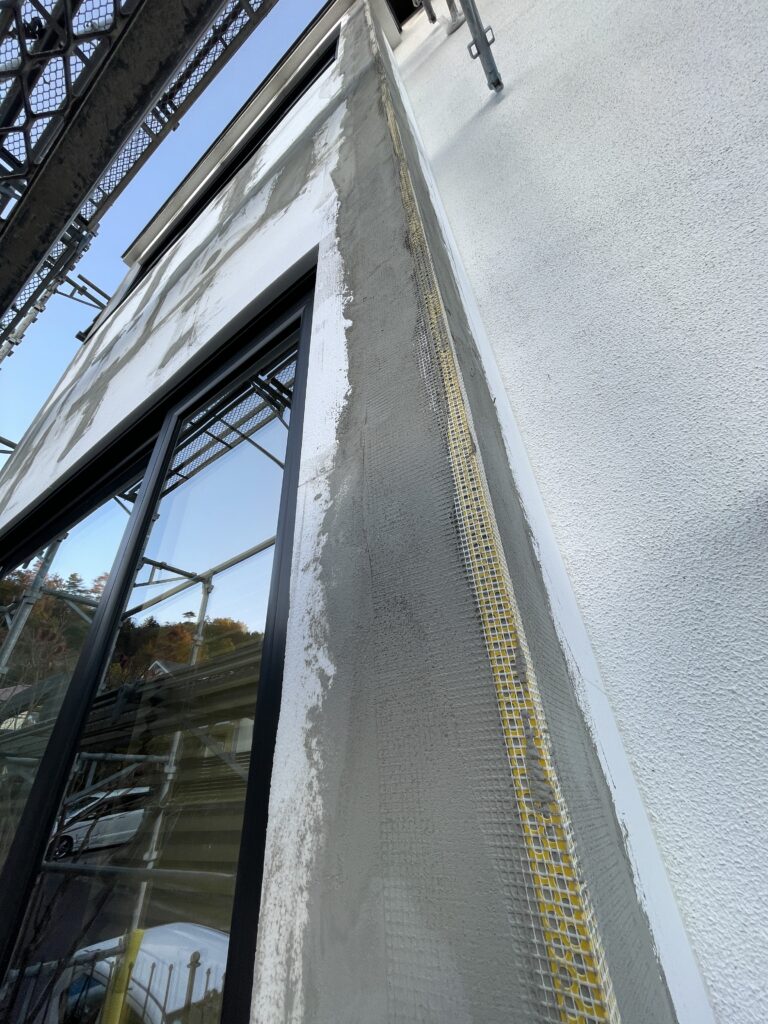 ジョイント部分にはメッシュを施工して割れが来ない様にしていきます。