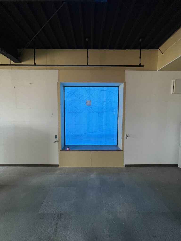 旧事務所のリフォーム工事ですが、北側にあった引き違い窓を撤去して、大きなFIX窓を設置しました。