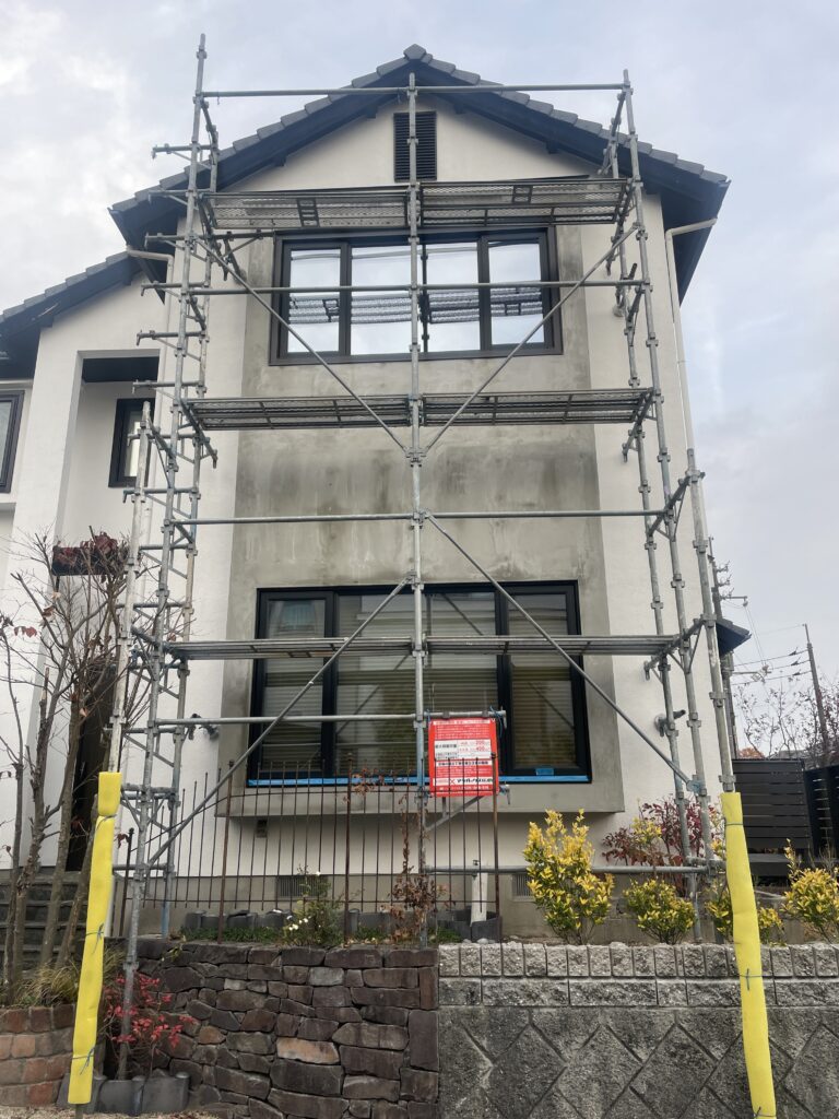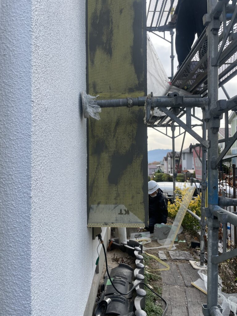 広島市安佐南区で工事中のEPSで外断熱を行い、その上からstoを塗装する現場は本日下塗りまで終わりました。