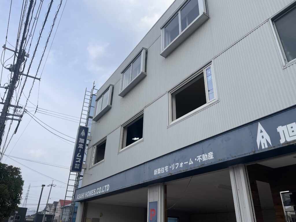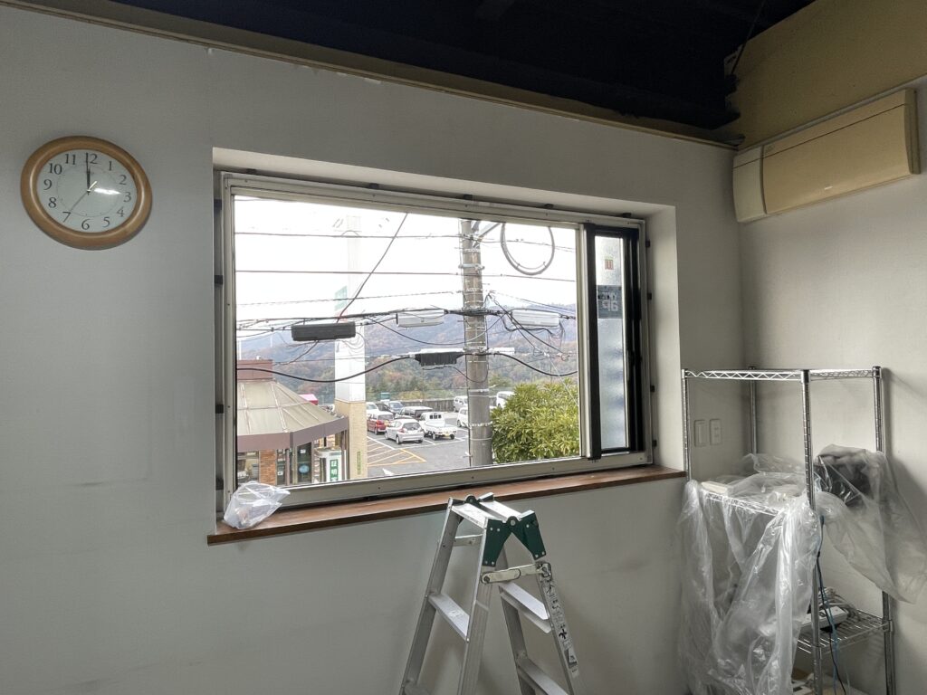 旧事務所のリフォーム工事は今日から窓のカバー工法工事に入りました。