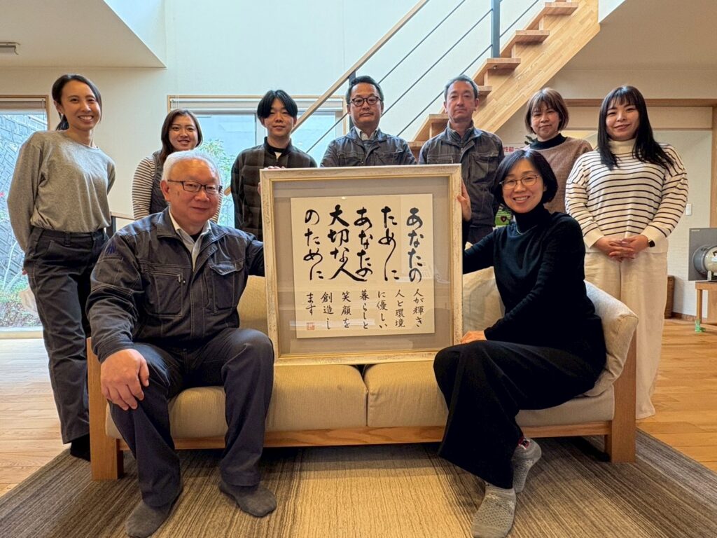 先日、社長が奈良の書道家の方に理念を書いて頂き、長野の額縁屋さんで額装して頂き、先日会社に届きました。