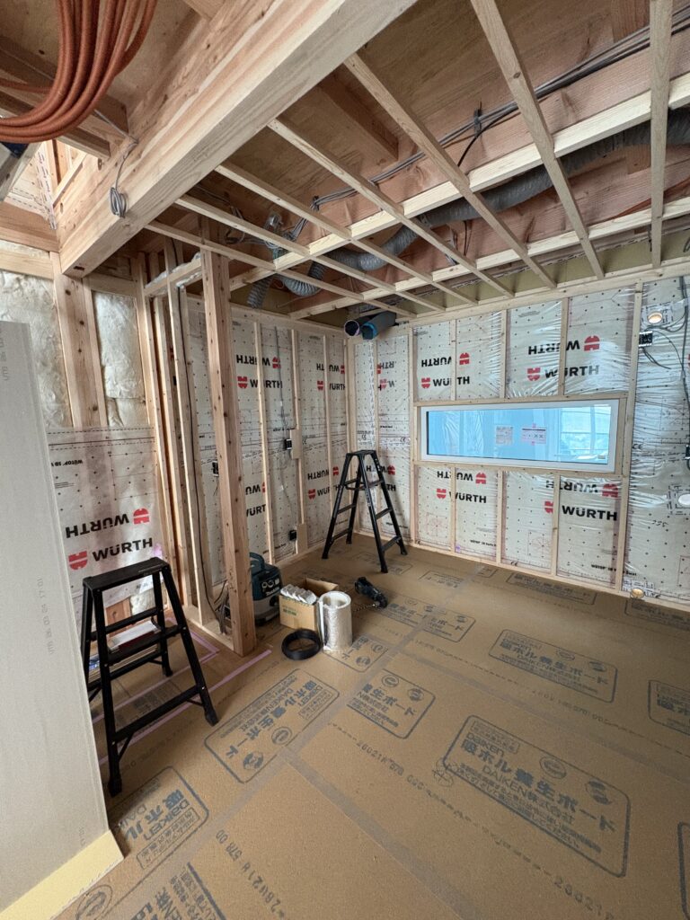 広島市西区の陽彩の家は天井と壁の下地工事中です