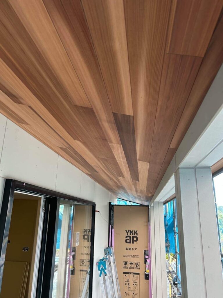 玄関の部分からリビングまで下屋根がありますので室内からも綺麗に見える軒裏になってくれると思います。