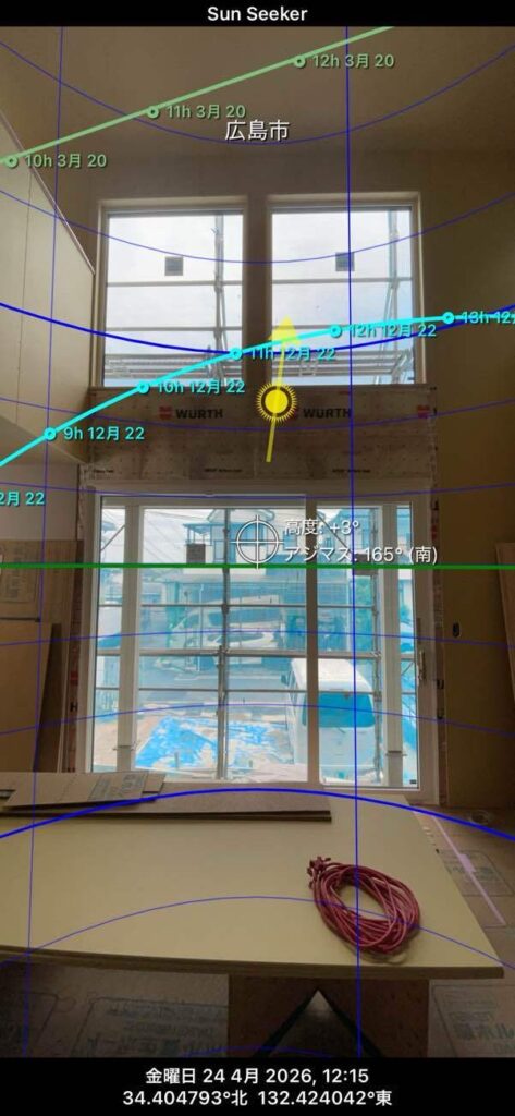今日は太陽の軌跡を確認しようとSunseekerを取り出して室内から確認してみました。