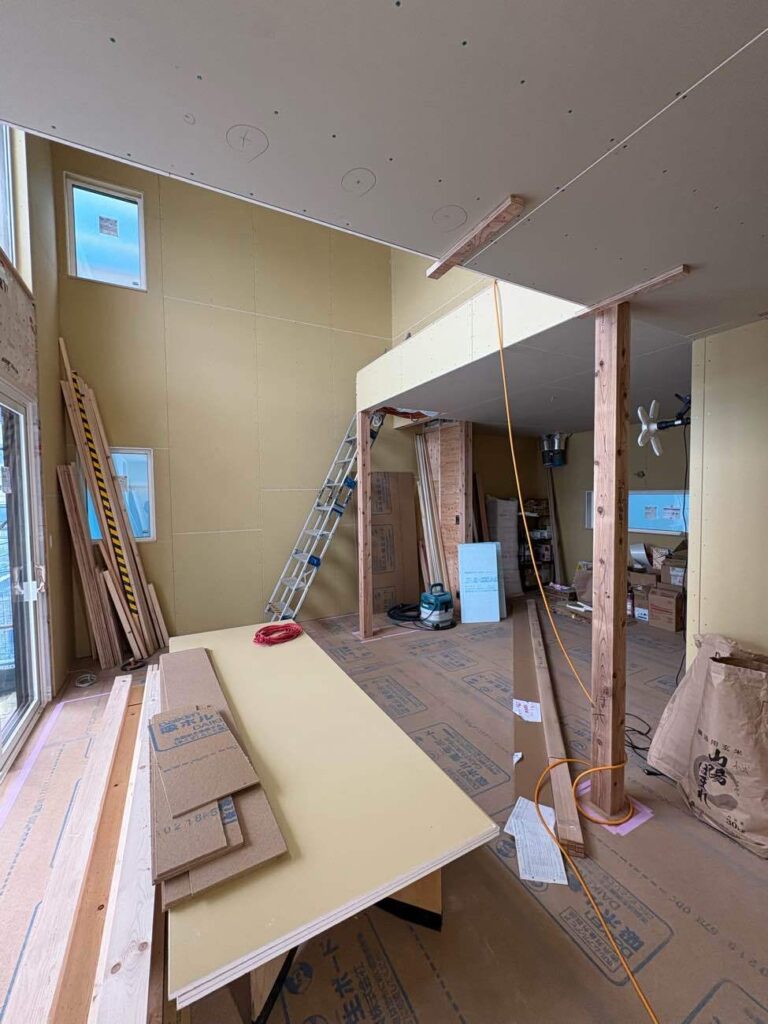 広島市西区の素の家『陽彩の家』は内装下地の工事が完了に近づいています。
